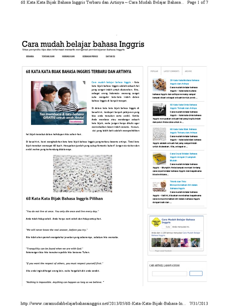Dalam bahasa inggris sendiri kata kata bijak sering kali disebut sebagai quotes, sedang dalam bahasa indonesia biasa juga disebut sebagai kata kata mutiara. Coba cermati kata kata bijak bahasa kamu itu unik. Dapatkan 333 lebih kata kata bijak tentang cinta dan kehidupan dalam bahasa inggris juga lengkap dengan artinya terbaru hanya di (kuliahbahasainggris.com). Asal mau bersabar, jodoh kan datang di waktu yang tepat. In a life, a things precious is not something that you can achieve, but something hard and mistake that we can walk on.
